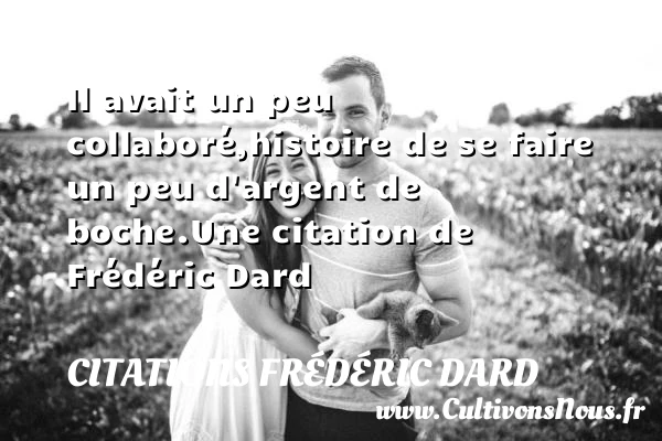 Evaluer cet article Il avait un peu collaboré, histoire de se faire un peu d’argent de boche. Une citation de Frédéric Dard A lire Ce qui rend la vie PARTAGER