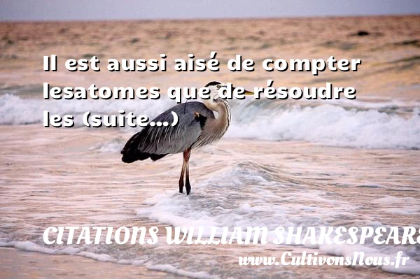 Evaluer cet article Il est aussi aisé de compter les atomes que de résoudre les propositions d’une amoureuse. Extrait de Comme il vous plaira William Shakespeare Citations de William Shakespeare A lire Car tout homme naît avec des PARTAGER