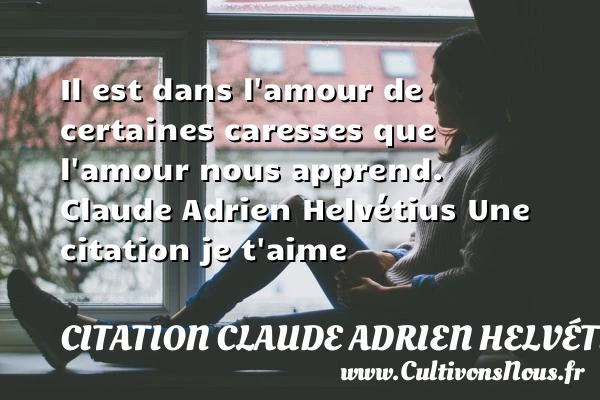 Evaluer cet article Il est dans l’amour de certaines caresses que l’amour nous apprend. Claude Adrien Helvétius Une citation je t’aime A lire On dort les uns contre les PARTAGER Tags: Citations je t aime