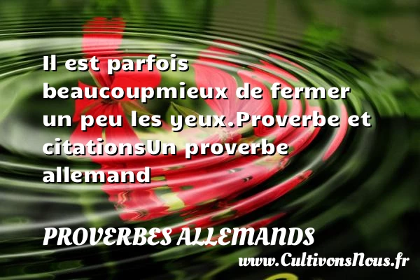 Evaluer cet article Il est parfois beaucoup mieux de fermer un peu les yeux. Proverbe et citations Un proverbe allemand A lire Trois sortes de gens disent PARTAGER