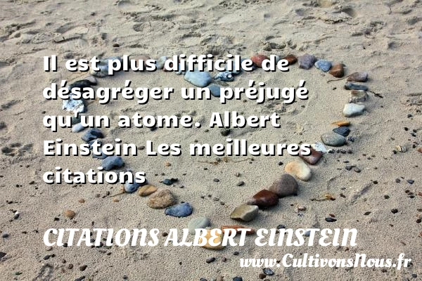 Evaluer cet article Il est plus difficile de désagréger un préjugé qu’un atome. Albert Einstein Les meilleures citations A lire Le passé PARTAGER Tags: les meilleures citations