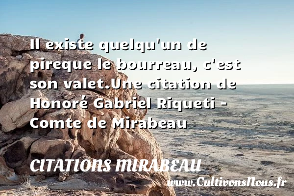Evaluer cet article Il existe quelqu’un de pire que le bourreau, c’est son valet. Une citation de Honoré Gabriel Riqueti – Comte de Mirabeau A lire La répartition des impôts est PARTAGER