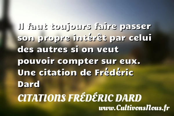 Il faut toujours faire passer son propre intérêt par celui des autres si on veut pouvoir compter sur eux.