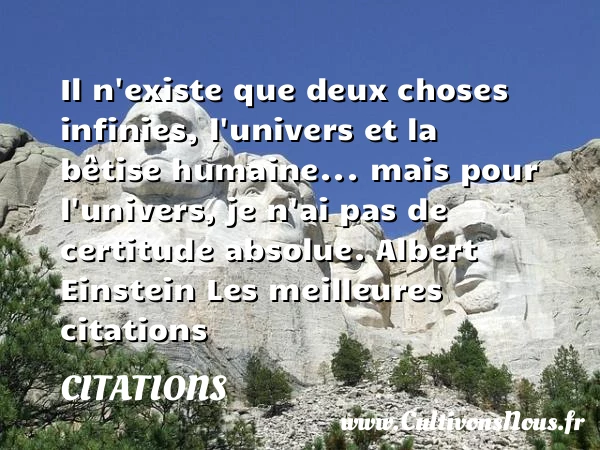 Il n’existe que deux choses infinies, l’univers et la bêtise humaine… mais pour l’univers, je n’ai pas de certitude absolue.