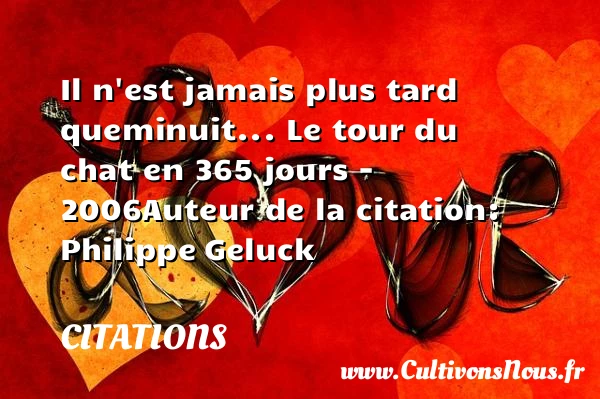 Evaluer cet article Il n’est jamais plus tard que minuit… Le tour du chat en 365 jours – 2006 Auteur de la citation: Philippe Geluck A lire Un essaim de menues occupations PARTAGER