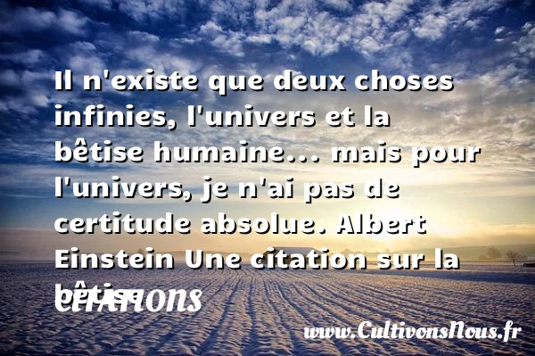 Il n’existe que deux choses infinies, l’univers et la bêtise humaine… mais pour l’univers, je n’ai pas de certitude absolue.