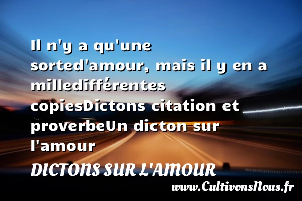 Evaluer cet article Il n’y a qu’une sorte d’amour, mais il y en a mille différentes copies Dictons citation et proverbe Un dicton sur l’amour A lire Pour la plupart des gens, PARTAGER
