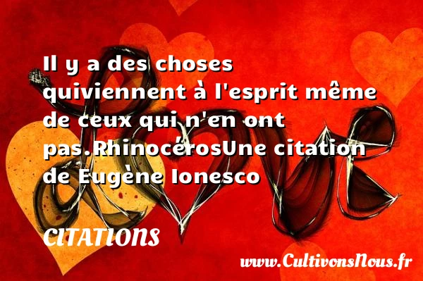 Evaluer cet article Il y a des choses qui viennent à l’esprit même de ceux qui n’en ont pas. Rhinocéros Une citation de Eugène Ionesco A lire Selon que nous sommes plus ou PARTAGER Tags: écrivain