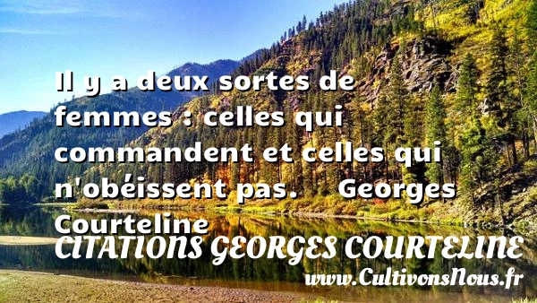 Evaluer cet article Il y a deux sortes de femmes : celles qui commandent et celles qui n'obéissent pas. Georges Courteline A lire L'imbécillité humaine PARTAGER