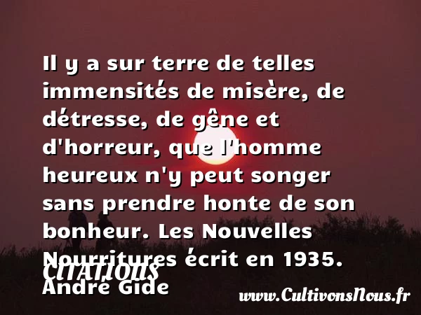 Il y a sur terre de telles immensités de misère, de détresse, de gêne et d’horreur, que l’homme heureux n’y peut songer sans prendre honte de son bonheur.