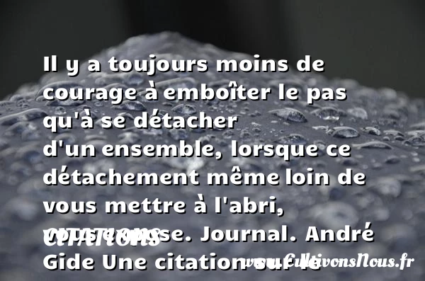 Il y a toujours moins de courage à emboîter le pas qu’à se détacher d’un ensemble, lorsque ce détachement même loin de vous mettre à l’abri, vous expose.