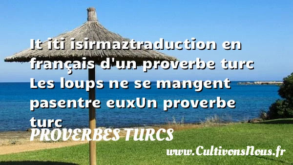 Evaluer cet article It iti isirmaztraduction en français d’un proverbe turc Les loups ne se mangent pas entre eux Un proverbe turc A lire Selon l'oiseau, la queue. PARTAGER