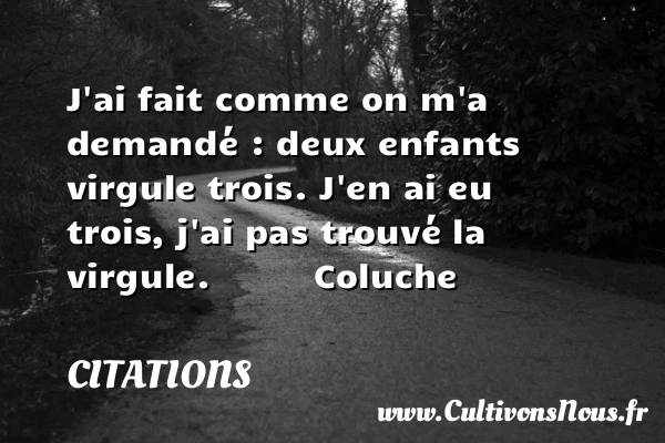 Evaluer cet article J'ai fait comme on m'a demandé : deux enfants virgule trois. J'en ai eu trois, j'ai pas trouvé la virgule. Coluche A lire Dieu a créé la pluie; oui, mais PARTAGER