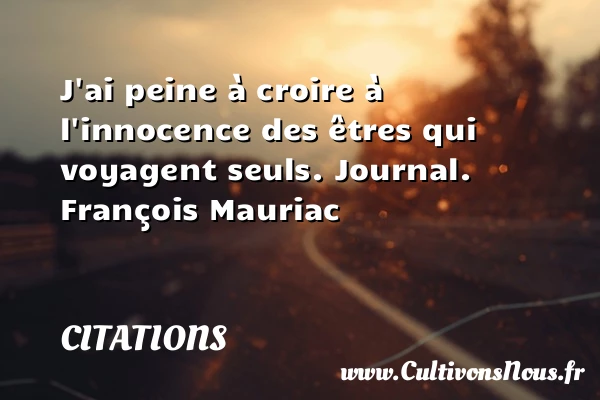 Evaluer cet article J’ai peine à croire à l’innocence des êtres qui voyagent seuls. Journal. François Mauriac A lire Quels drôles de métiers que les PARTAGER