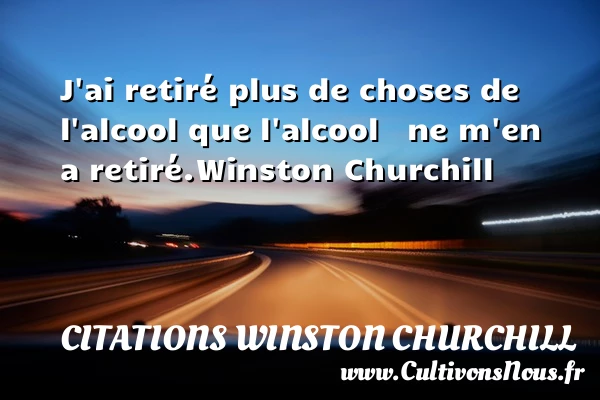Evaluer cet article J'ai retiré plus de choses de l'alcool que l'alcool ne m'en a retiré. Winston Churchill A lire L'extérieur du cheval PARTAGER Tags: Citation alcool