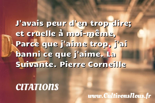 J’avais peur d’en trop dire; et cruelle à moi-même, Parce que j’aime trop, j’ai banni ce que j’aime.