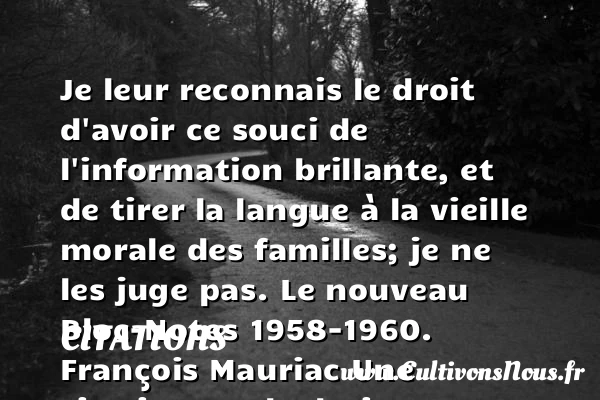 Je leur reconnais le droit d’avoir ce souci de l’information brillante, et de tirer la langue à la vieille morale des familles; je ne les juge pas.