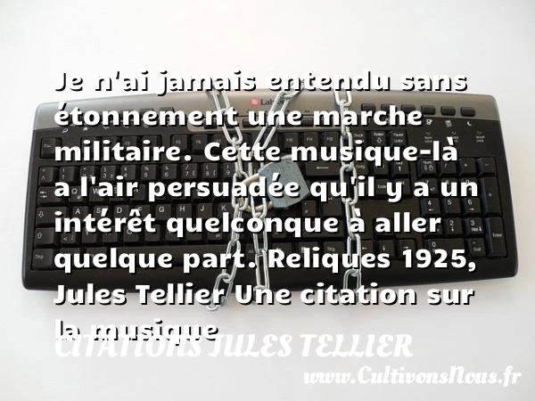 Je n’ai jamais entendu sans étonnement une marche militaire. Cette musique-là a l’air persuadée qu’il y a un intérêt quelconque à aller quelque part.