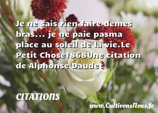 Evaluer cet article Je ne sais rien faire de mes bras… je ne paie pas ma place au soleil de la vie. Le Petit Chose 1868 Une citation de Alphonse Daudet A lire En fait, le week-end dernier, Jospin PARTAGER