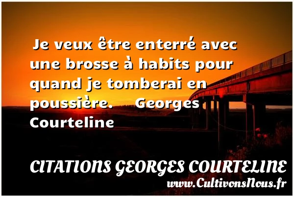 Evaluer cet article Je veux être enterré avec une brosse à habits pour quand je tomberai en poussière. Georges Courteline A lire Je ne vois nulle honte PARTAGER