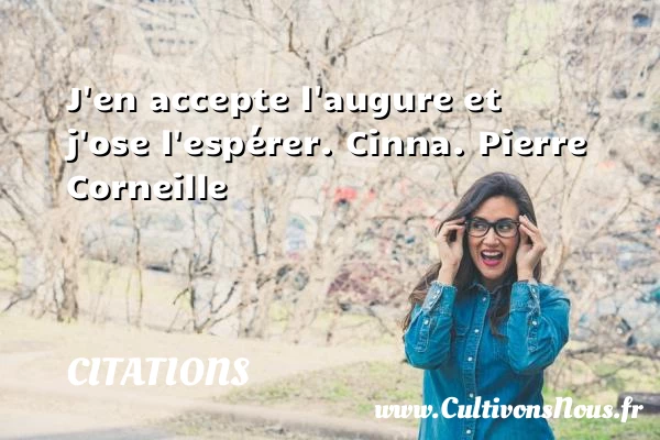 Evaluer cet article J’en accepte l’augure et j’ose l’espérer. Cinna. Pierre Corneille A lire Désormais, on pourra être sénateur ou PARTAGER