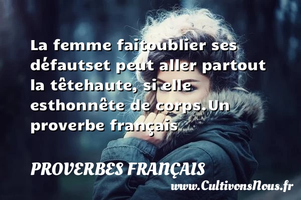 Evaluer cet article La femme fait oublier ses défauts et peut aller partout la tête haute, si elle est honnête de corps. Un proverbe français A lire Il vaut mieux être PARTAGER