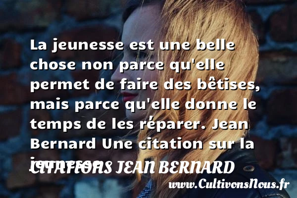 La jeunesse est une belle chose non parce qu’elle permet de faire des bêtises, mais parce qu’elle donne le temps de les réparer.