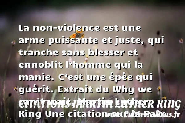 La non-violence est une arme puissante et juste, qui tranche sans blesser et ennoblit l’homme qui la manie. C’est une épée qui guérit.