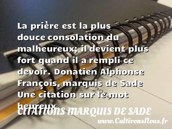 La prière est la plus douce consolation du malheureux; il devient plus fort quand il a rempli ce devoir.