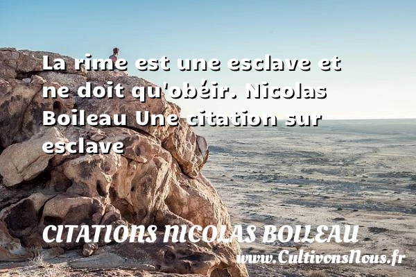 Evaluer cet article La rime est une esclave et ne doit qu’obéir. Nicolas Boileau Une citation sur esclave A lire L'esclave fait son orgueil PARTAGER Tags: Citation esclave