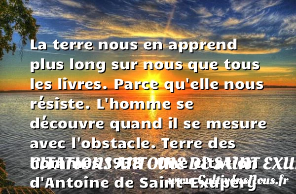 La terre nous en apprend plus long sur nous que tous les livres. Parce qu’elle nous résiste. L’homme se découvre quand il se mesure avec l’obstacle.