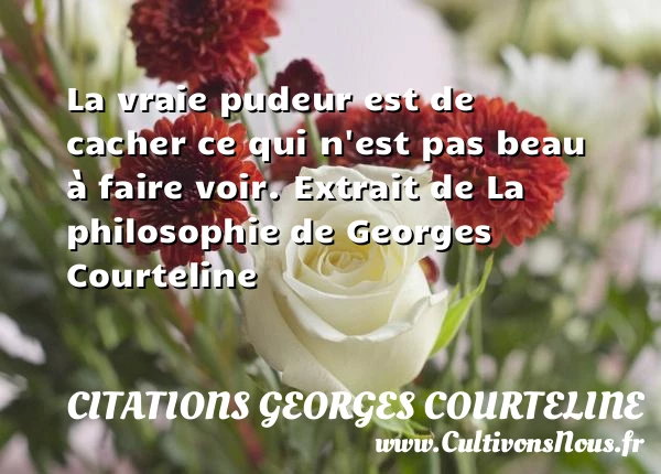 Evaluer cet article La vraie pudeur est de cacher ce qui n'est pas beau à faire voir. Extrait de La philosophie de Georges Courteline A lire La douceur de l'homme pour la PARTAGER