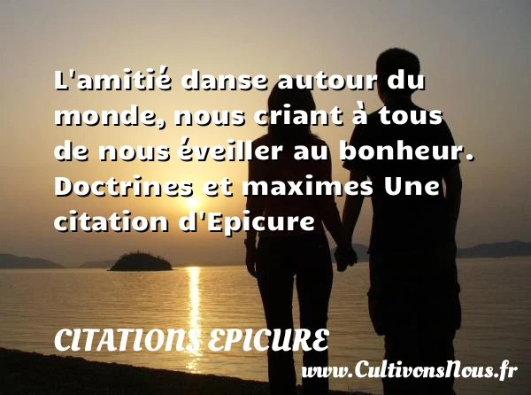 Evaluer cet article L’amitié danse autour du monde, nous criant à tous de nous éveiller au bonheur. Doctrines et maximes Une citation d’Epicure A lire Le plaisir n'est pas un mal en PARTAGER Tags: Citation danse