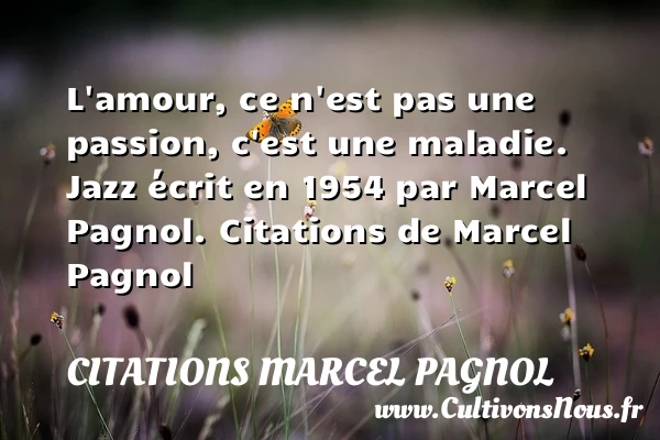 Evaluer cet article L’amour, ce n’est pas une passion, c’est une maladie. Jazz écrit en 1954 par Marcel Pagnol. Citations de Marcel Pagnol A lire Ce qui m'intéresse surtout dans le PARTAGER Tags: Citation jazz