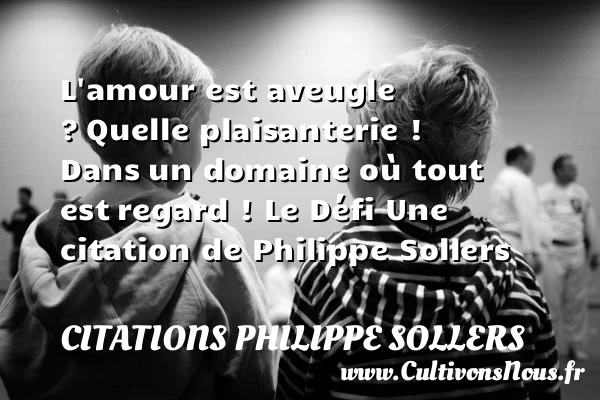 Evaluer cet article L’amour est aveugle ? Quelle plaisanterie ! Dans un domaine où tout est regard ! Le Défi Une citation de Philippe Sollers A lire Composer un livre, seul PARTAGER