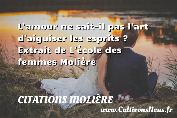Evaluer cet article L'amour ne sait-il pas l'art d'aiguiser les esprits ? Extrait de L'école des femmes Molière A lire C'est être d'un naturel trop dur PARTAGER