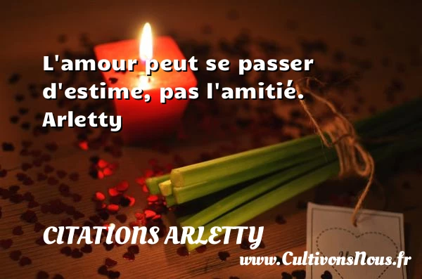 Evaluer cet article L’amour peut se passer d’estime, pas l’amitié. Arletty A lire Le noir c'est triste PARTAGER Tags: Citations Amour et Citations
