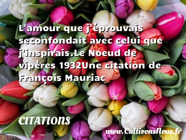 Evaluer cet article L’amour que j’éprouvais se confondait avec celui que j’inspirais. Le Noeud de vipères 1932 Une citation de François Mauriac A lire Hibernation je me cryogénise PARTAGER