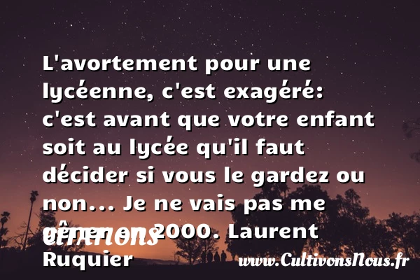 L’avortement pour une lycéenne, c’est exagéré: c’est avant que votre enfant soit au lycée qu’il faut décider si vous le gardez ou non…