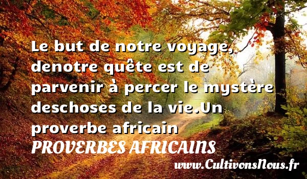 Evaluer cet article Le but de notre voyage, de notre quête est de parvenir à percer le mystère des choses de la vie. Un proverbe africain A lire Qui écoute les donneurs PARTAGER