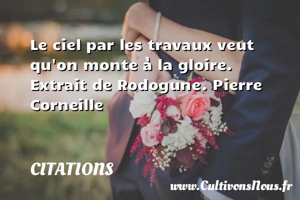 Evaluer cet article Le ciel par les travaux veut qu’on monte à la gloire. Extrait de Rodogune. Pierre Corneille A lire L'amour est un petit bateau qui PARTAGER