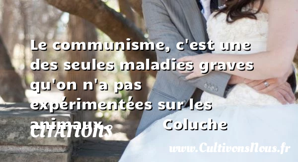 Evaluer cet article Le communisme, c'est une des seules maladies graves qu'on n'a pas expérimentées sur les animaux. Coluche A lire Un homme cruel avec les PARTAGER Tags: Citation animaux