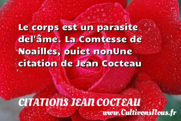 Evaluer cet article Le corps est un parasite de l’âme. La Comtesse de Noailles, oui et non Une citation de Jean Cocteau A lire Une mise en scène est un PARTAGER