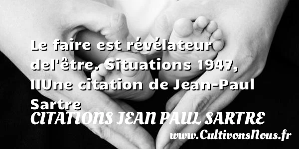 Evaluer cet article Le faire est révélateur de l’être. Situations 1947, II Une citation de Jean-Paul Sartre A lire On ne forme pas inpunément PARTAGER