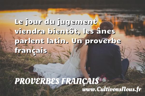 Evaluer cet article Le jour du jugement viendra bientôt, les ânes parlent latin. Un proverbe français A lire Bon cheval juge son PARTAGER Tags: Proverbe juger