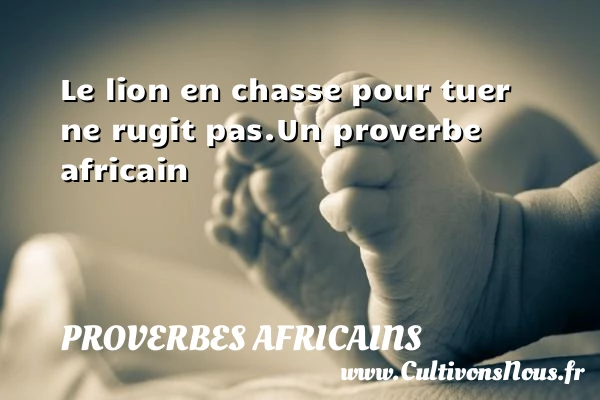 Evaluer cet article Le lion en chasse pour tuer ne rugit pas. Un proverbe africain A lire Une calebasse pleine de lait PARTAGER