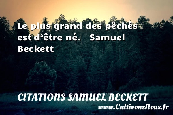 Evaluer cet article Le plus grand des pêchés est d’être né. Samuel Beckett A lire Non, l'avoir dit me convainc du PARTAGER