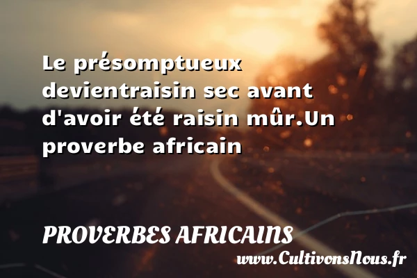Evaluer cet article Le présomptueux devient raisin sec avant d’avoir été raisin mûr. Un proverbe africain A lire Quand un homme, la corde au PARTAGER