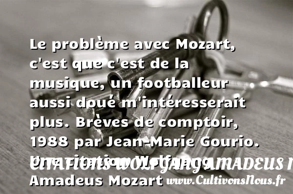 Brèves de comptoir, 1988 par Jean-Marie Gourio. Une citation Wolfgang Amadeus Mozart