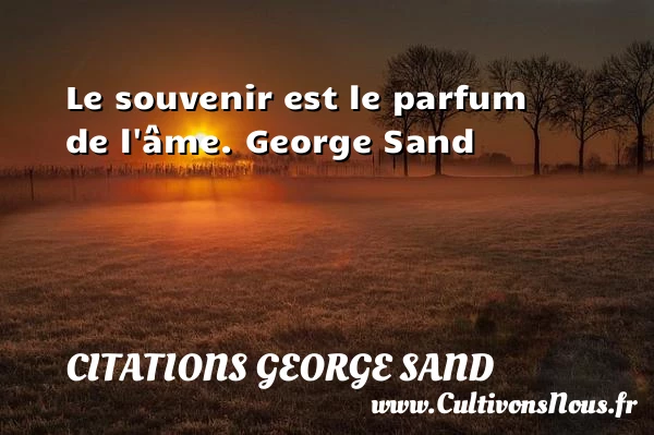 Evaluer cet article Le souvenir est le parfum de l’âme. George Sand A lire On se cache d'être brave comme d'aimer. PARTAGER Tags: Citations aimer